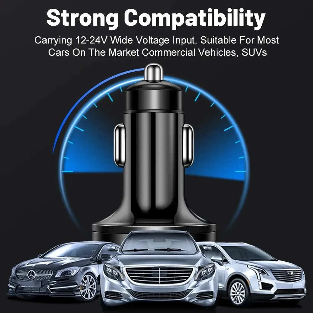 Upgrade your car charging experience with this high-performance Digital Display Car Charger featuring 4 USB ports + 2 PD fast-charging ports. Designed for efficiency, safety, and style — perfect for cars, trucks, and SUVs.