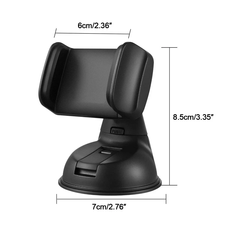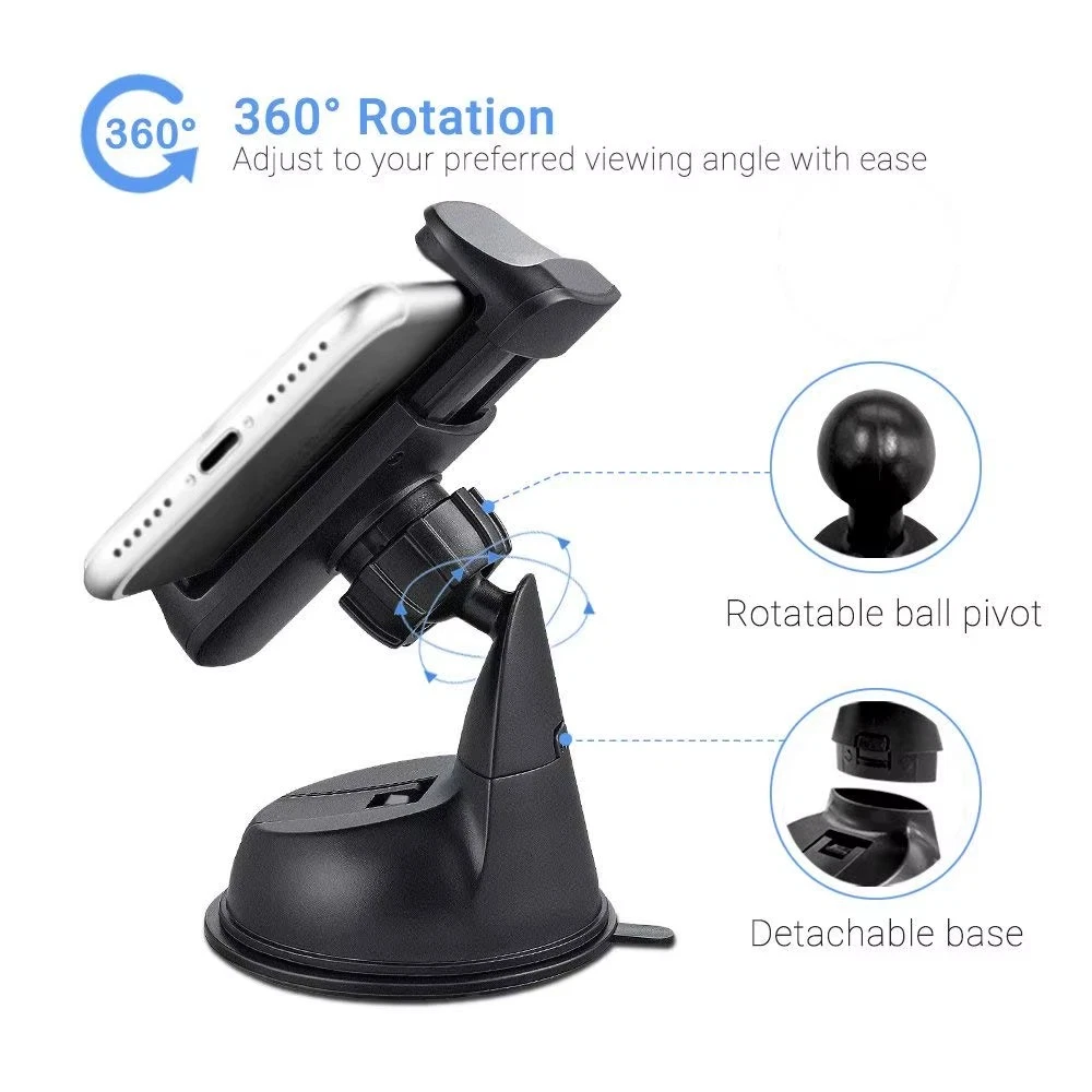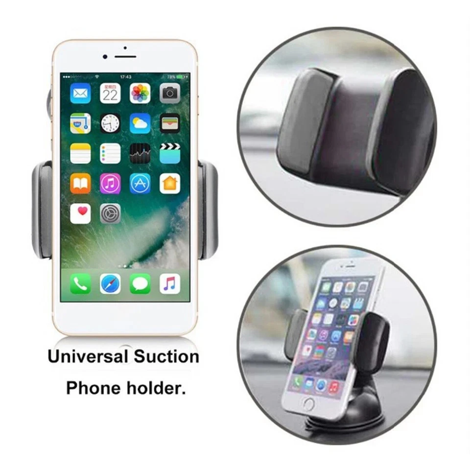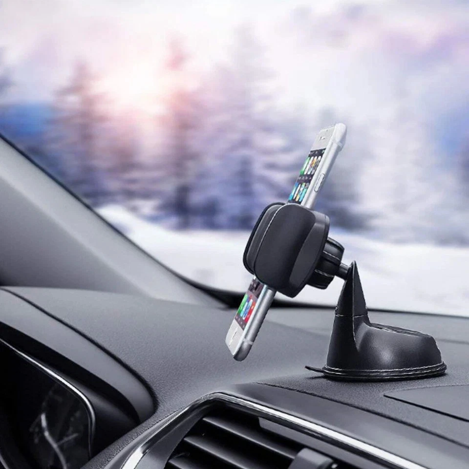 Universal Car Mobile Phone Holder 360° Rotating Suction Mount – Black
